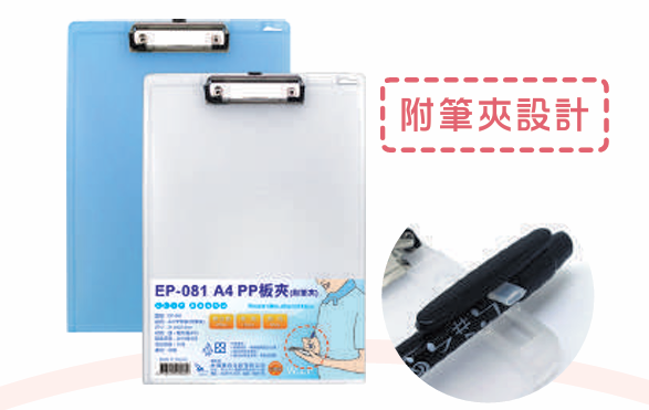 A4 PP板夾(附筆夾)
