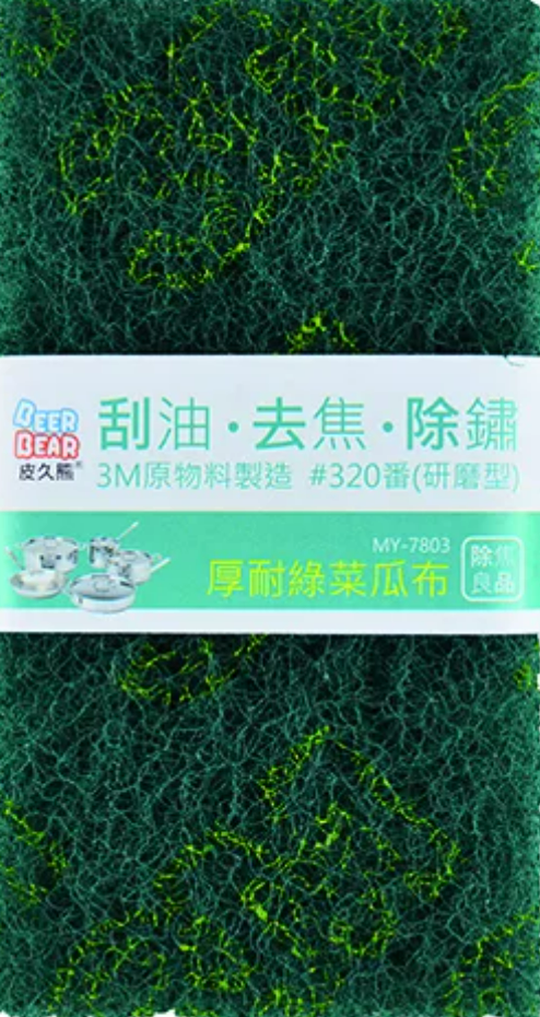 BEER BEAR 厚耐綠菜瓜布 #320|刮油 去焦 除鏽 研磨型