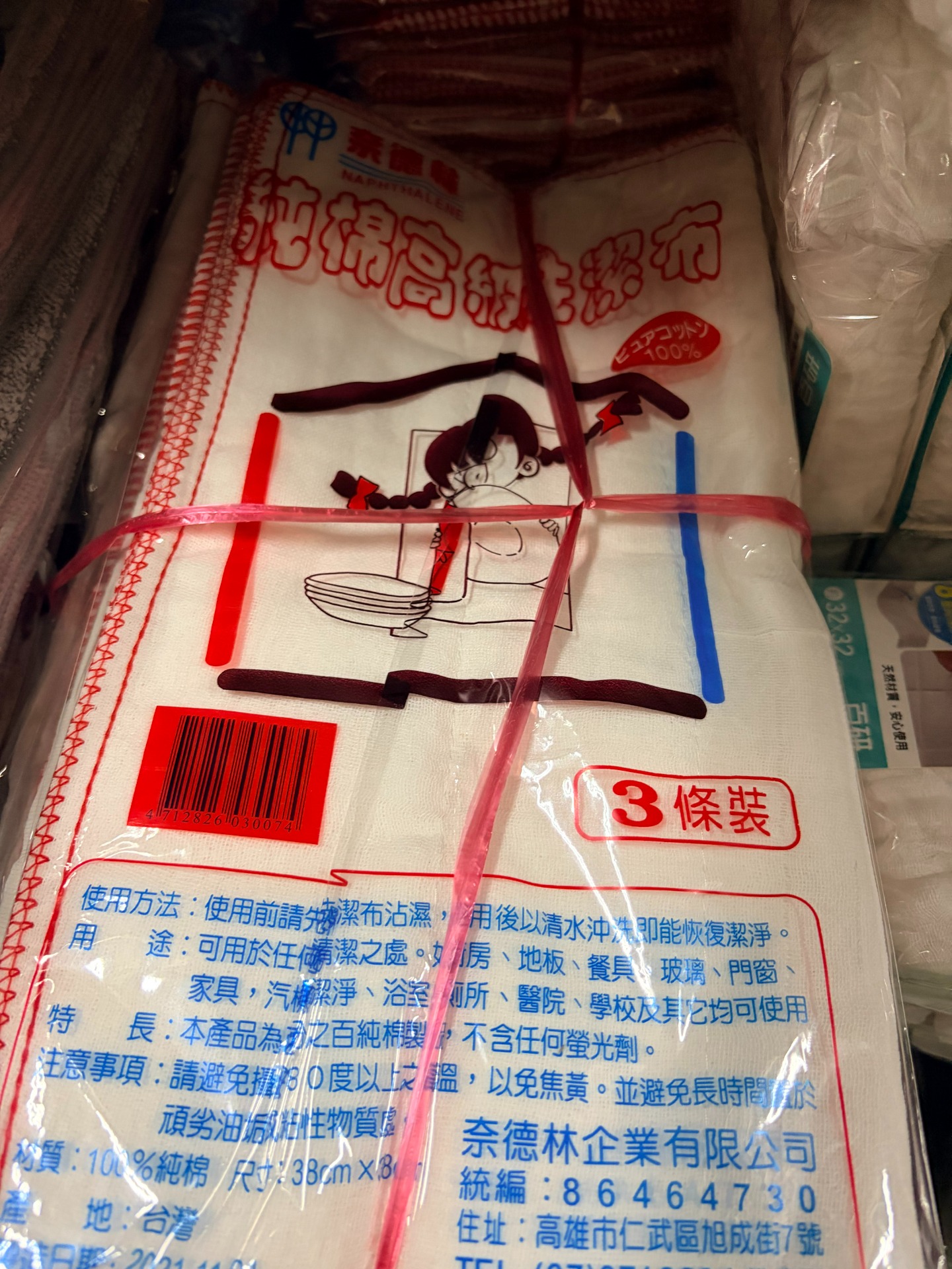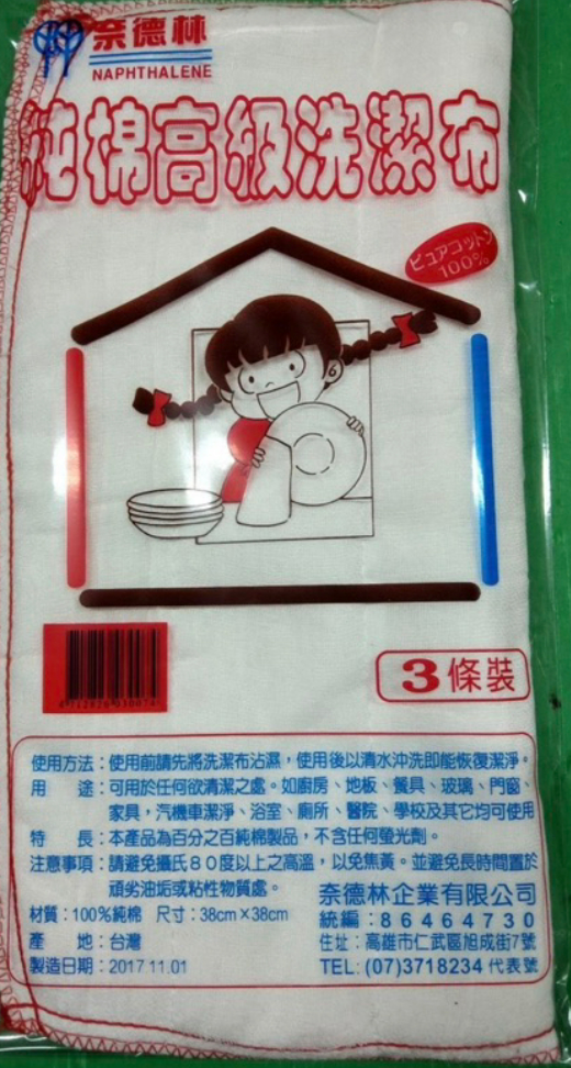 奈德林純棉高級洗潔布,100%純棉材質,尺寸38x38cm,吸水力佳、耐用不易破,適用廚房、地板、家具、玻璃、浴室等清潔用途。3條超值組,台灣製造,居家清潔必備好幫手。